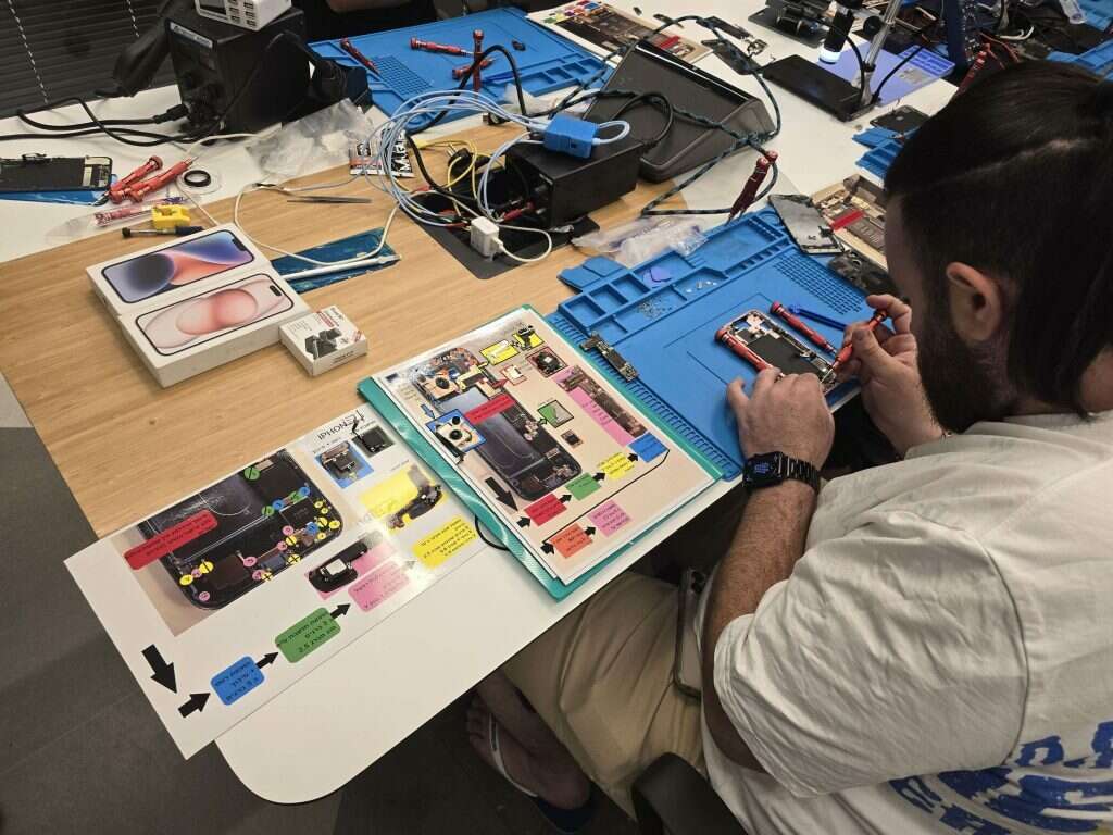 הקורס מחולק לחמישה שלבים, המבטיחים הכשרה מקיפה ומעמיקה. השלבים כוללים תרגול מעשי נרחב, לימוד מכשור מעבדה עבודה עם ספק כוח רב מודד ופתרון תקלות, טיפול במכשירים ברמת דרג ד’ פלוס, שיעור תוכנה מקיף, וכן לימוד ותרגול חידוש מסכים. השילוב של תיאוריה מעמיקה ותרגול מעשי נרחב הופך את הבוגרים למקצוענים מיומנים ומבוקשים.