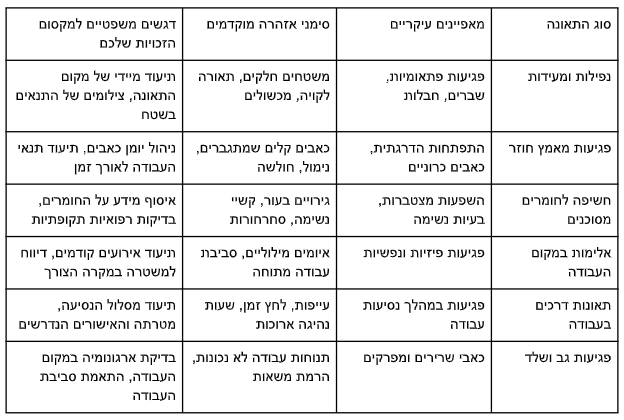 סוגי תאונות העבודה הנפוצות בישראל