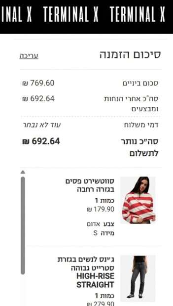 בבדיקה נוספת בדקנו סל קניות באתר האופנה טרמינל איקס.