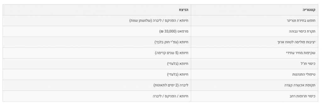טבלת השוואה: כל הפרמטרים בשורה אחת