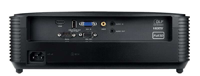 באחורי המקרן נמצאים כל החיבורים, כניסות ויציאות, הכוללות כניסת HDMI, כניסה + יציאת VGA, כניסת USB המיועדת לספק כוח למכשיר חיצוני כמו סטרימר או קליקר למצגות, וכמובן כניסה ויציאה לאודיו בתצורת PL3.5.