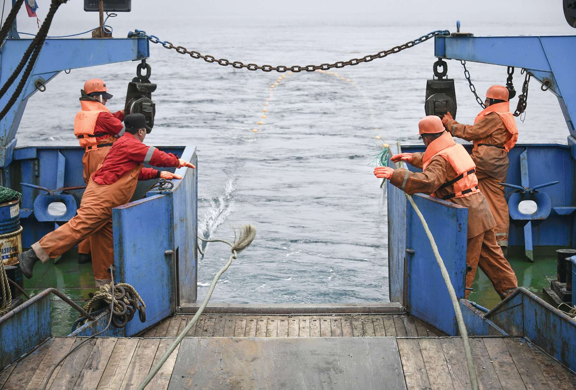 צילום: GettyImages // כתיבה נטולת שלווה, למרות הים המהורהר. דייגים בפעולה באלסקה