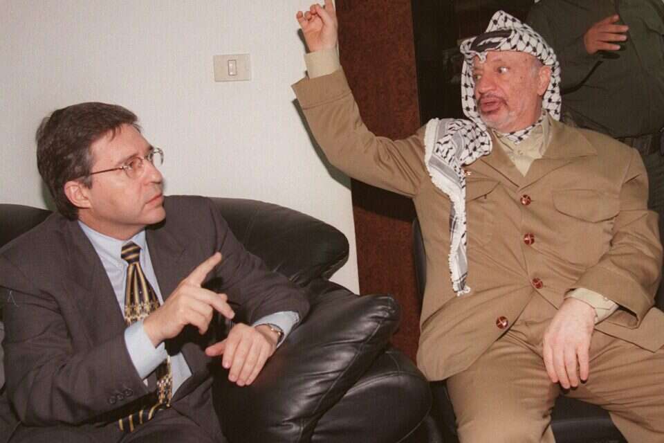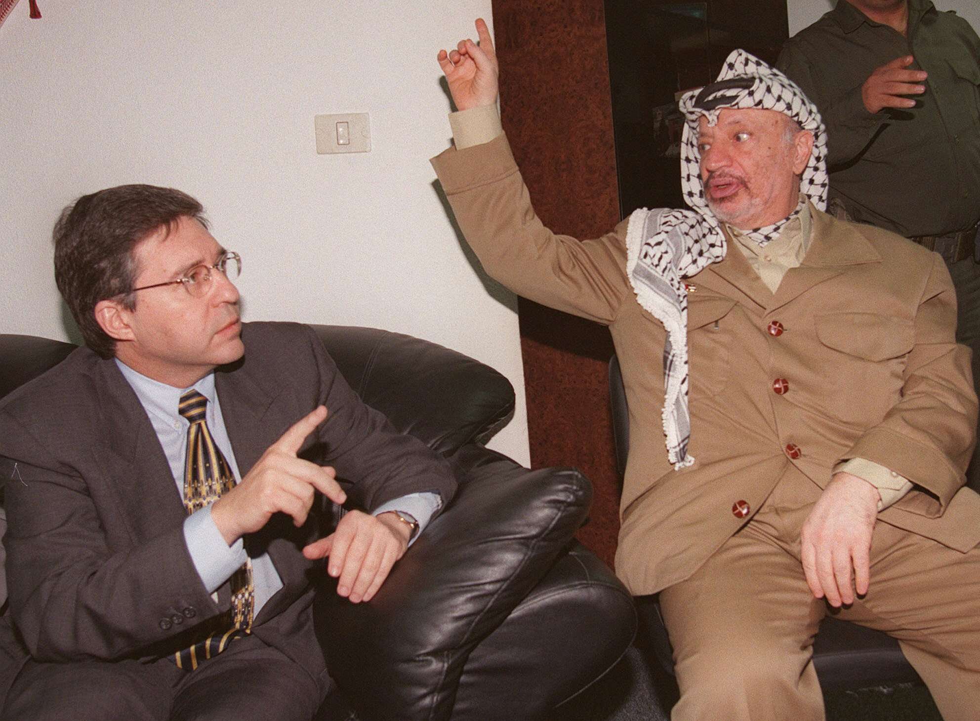 יוסי ביילין בפגישה עם יאסר ערפאת, 1997 | צילום: אי.פי