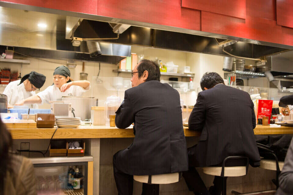 תפאורה אקזוטית, עוול בנאלי. גברים במסעדה בטוקיו, צילום: Getty Images