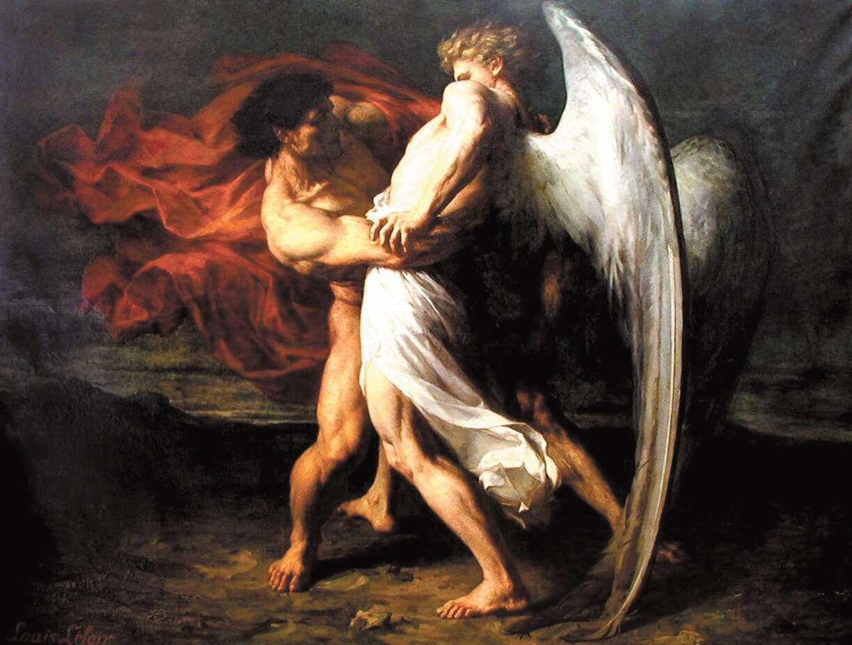 קריאה מאתגרת ולא מקובעת. יעקב נלחם במלאך, ציור של אלכסנדר לואיס ללואר מהמאה ה-19