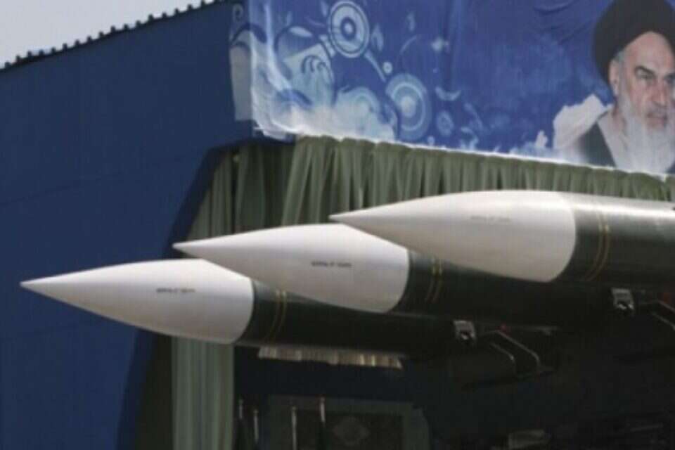 צילום: AP // Under a portrait of the late Ayatollah Khomeini, Sam-6 missiles are displayed by Iran's Revolutionary Guard [Archive]