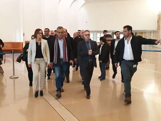 ח"כ יזבק בדיון הבוקר בבית המשפט, בליווי חברי הרשימה המשותפת // צילום: יאיר אלטמן