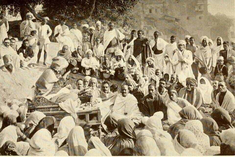מספר סיפורים בפני קהל בכפר בהודו, 1913