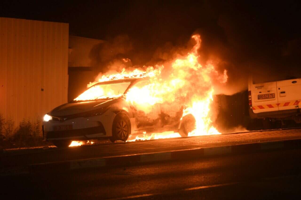 ניידת משטרה שהוצתה במהלך העימותים, צילום: יוסי זליגר