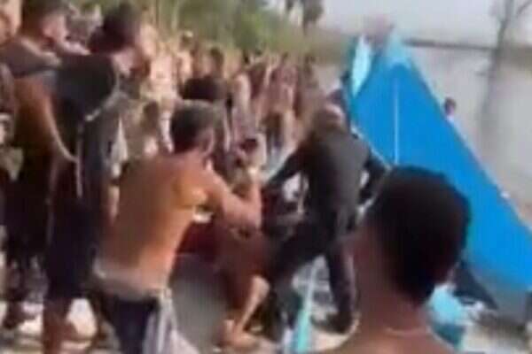 בסרטון ניתן לראות כי אחד המעוכבים החל לתקוף את השוטר, בשעה שהשוטר יורה באוויר על מנת להרחיק ממנו את הקהל.