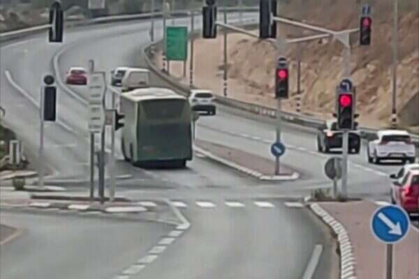 נהג אוטובוס אותר על ידי המשטרה לאחר שתועד מבצע עבירות תנועה חמורות בצומת אפרת צפון שבגוש עציון, בהן חציית צומת באור אדום תוך עקיפה בפס רצוף בניגוד לתנועה.
