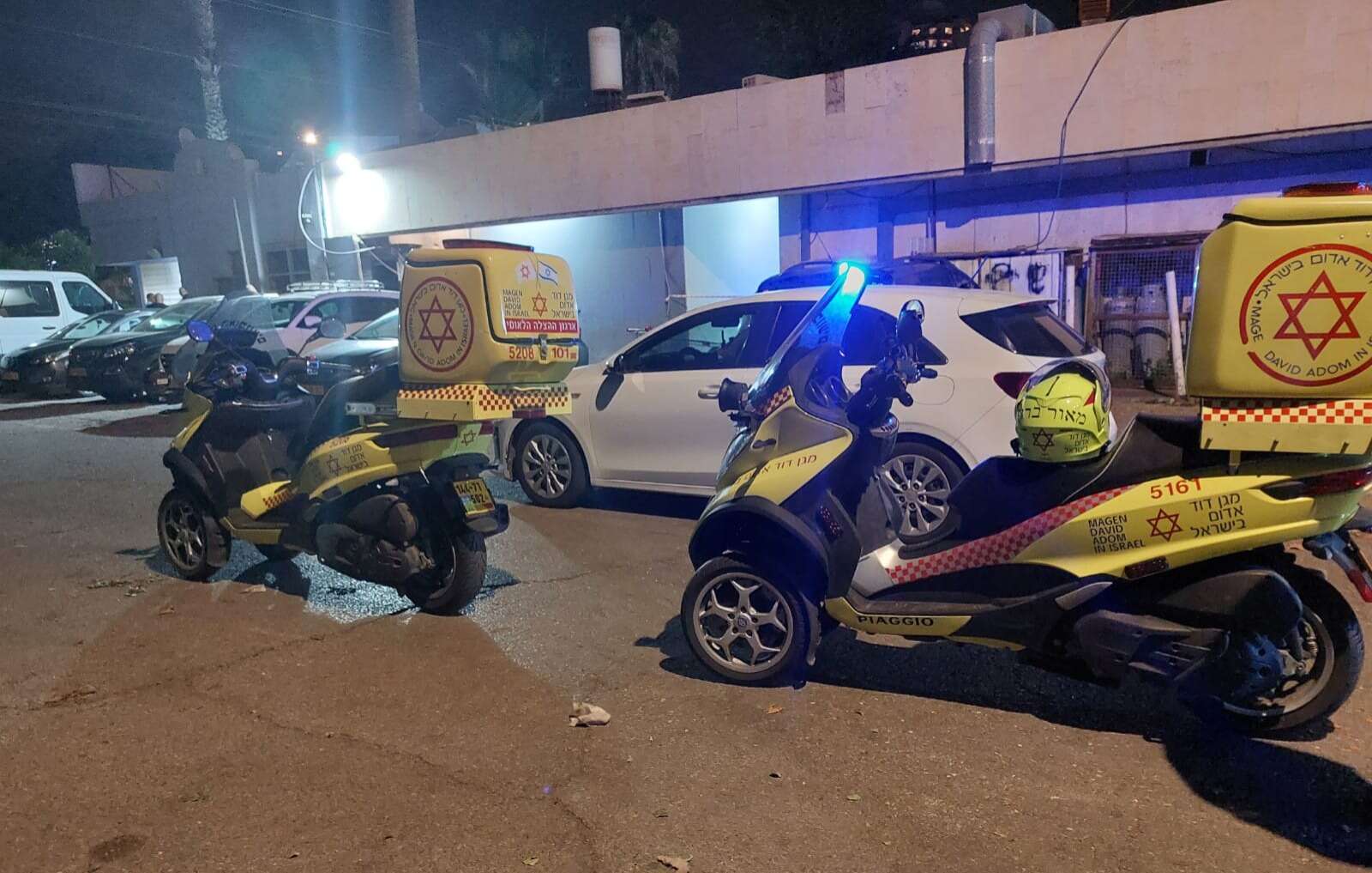 החובשים מיחידת האופנועים של מד"א מאור ברוך ויניב רפאל סיפרו: "הפצוע שכב מאחורי מבנה כשהוא בהכרה מעורפלת וסובל מפציעה חודרת בגופו. הענקנו לו טיפול רפואי ראשוני מציל חיים שכלל עצירת דימומים וחבישות ופינינו אותו בניידת טיפול נמרץ של מד"א לבי"ח כשמצבו קשה ולא יציב".