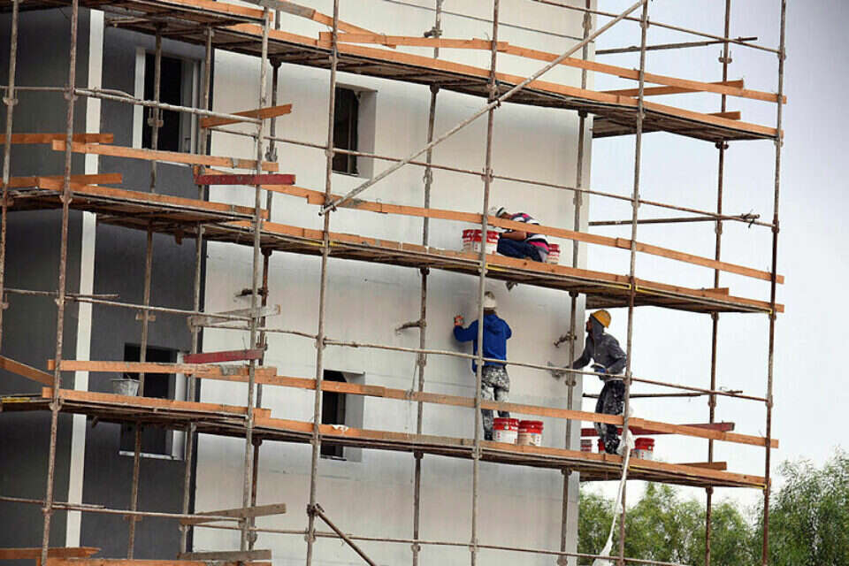 פועלי בנין על פיגומים, צילום: דודו גרינשפן