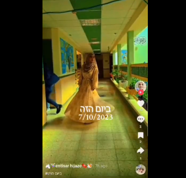 בסרטון שפרסמה ברשת הטיקטוק, נראית האישה כשהיא רוקדת בשטח בית ספר בנצרת שבו היא עובדת, כשברקע מתנגן שיר עם המילים "Another good time", ועל המסך מופיע הכיתוב: "ביום הזה 7/10/23" (ככל הנראה מדובר בסרטון שנוצר אוטומטית על ידי הפלטפורמה ביום השנה להעלאת הסרטון המקורי).