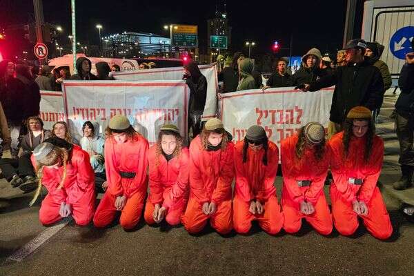 המפגינים נשאו שלטים עליהם נכתב ״להבדיל בין אוהב לאויב״, ״יש לי פיאות וכיפה זה לא סיבה לירות בי״, ושלט נוסף בו כתוב ״יהודי לא יורה ביהודי״, כסמל למקרה שאירע אתמול.