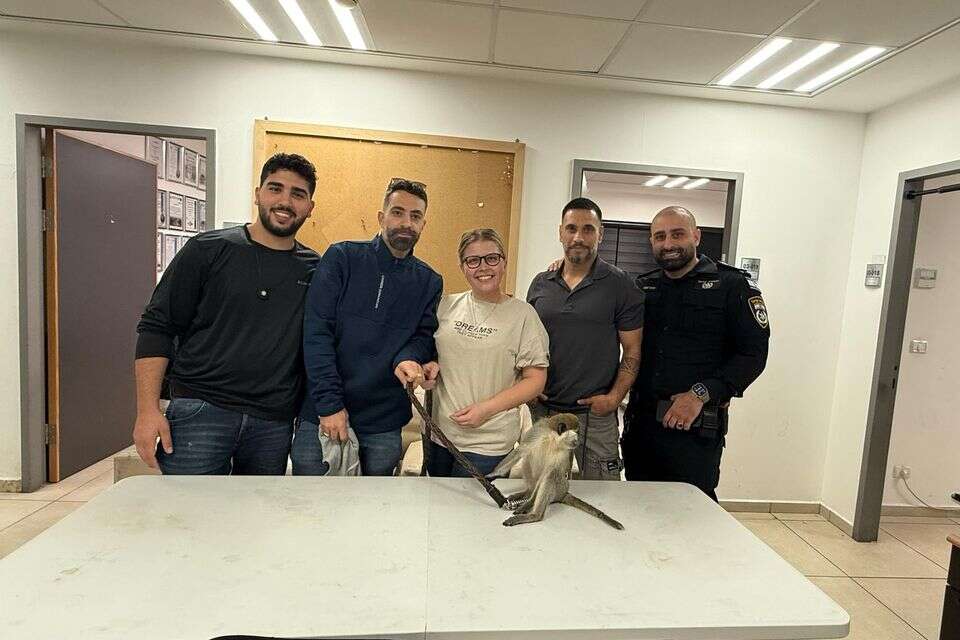 שוטרי משטרת ישראל הצילו קוף שאותר בשטח פתוח בפזורה הבדואית// דוברות המשטרה
