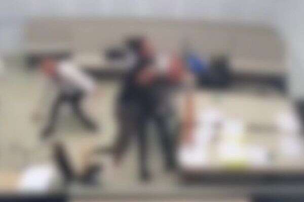 בעקבות האירוע הוזעקו למקום מאבטחי משמר בתי המשפט, שהודיעו לו שהוא עצור והורו לו להישאר במקום עד להגעת המשטרה. בזמן ההמתנה ניסתה אחותו של סופר להרגיעו וכאשר אחד המאבטחים התקרב אליו החל לתקוף גם אותו בפניו באגרופו ונשך את רגלו בעוצמה רבה. כתוצאה מהתקיפות נגרמו לתובע ולמאבטח פציעות וחבלות.