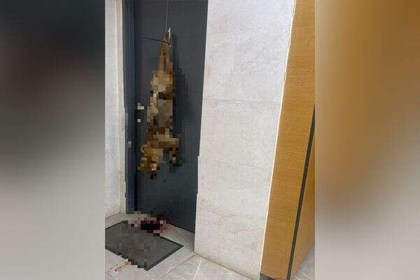 בנוסף, מחומר הראיות עלה כי תחילה שלח החשוד הודעת טקסט מאיימת אל הקורבן, ובהמשך הגיע לדירתו עם הפגר הקשור ברגליו באמצעותו אזיקונים, והניח אותו בפתח ביתו.