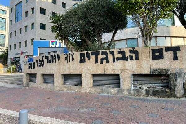 אתמול המשטרה עצרה את החשוד, תושב רמת גן, בן 43 בחשד שריסס את כתובת הגרפיטי על בנייני חדשות 13 ברמת החייל. מהמשטרה נמסר כי נמצאו בביתו חומרים מפלילים.