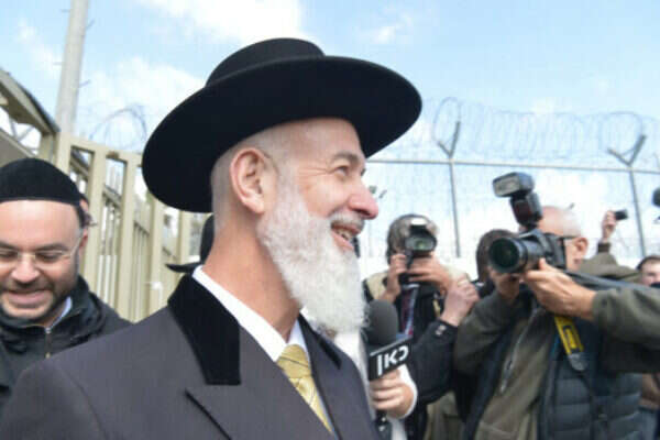 נידון לשלוש וחצי שנות מאסר. הרב יונה מצגר עם שחרורו מהכלא, היום // צילום: יוסי זליגר