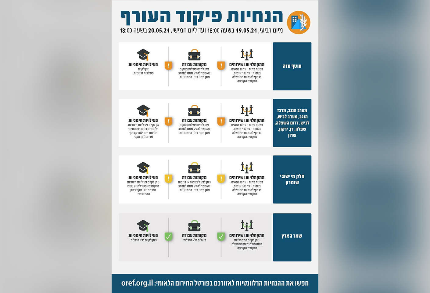 18:07: פיקוד העורף עדכן כי גם מחר לא יתקיימו לימודים ברוב חלקי הארץ. לפי שעה, אין הגבלות באזור הצפון.