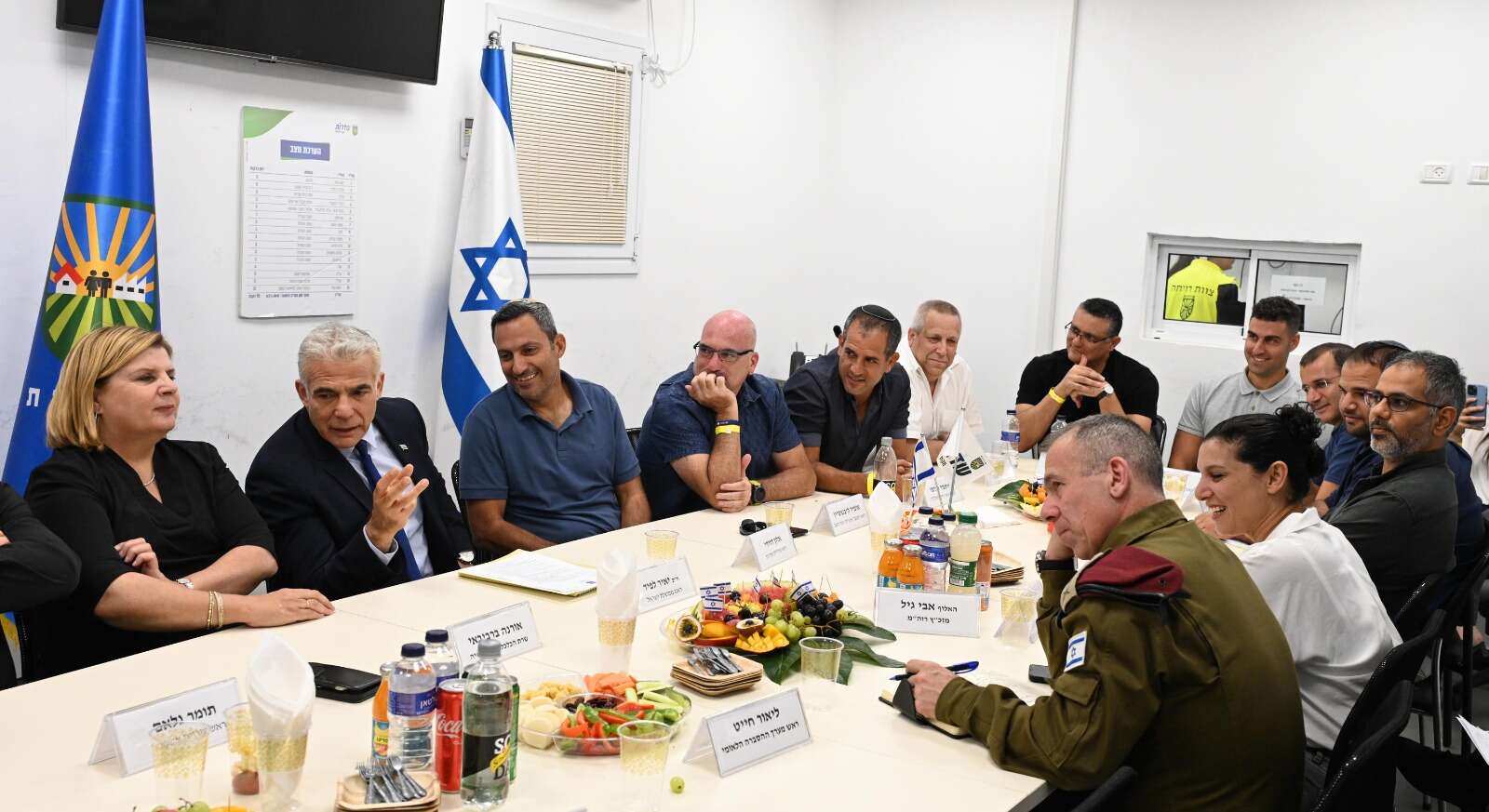 לפיד, גנץ, כוכבי וטולדנו בהערכת מצב במרכז האש בפיקוד הדרום // צילום: אלעד מלכה