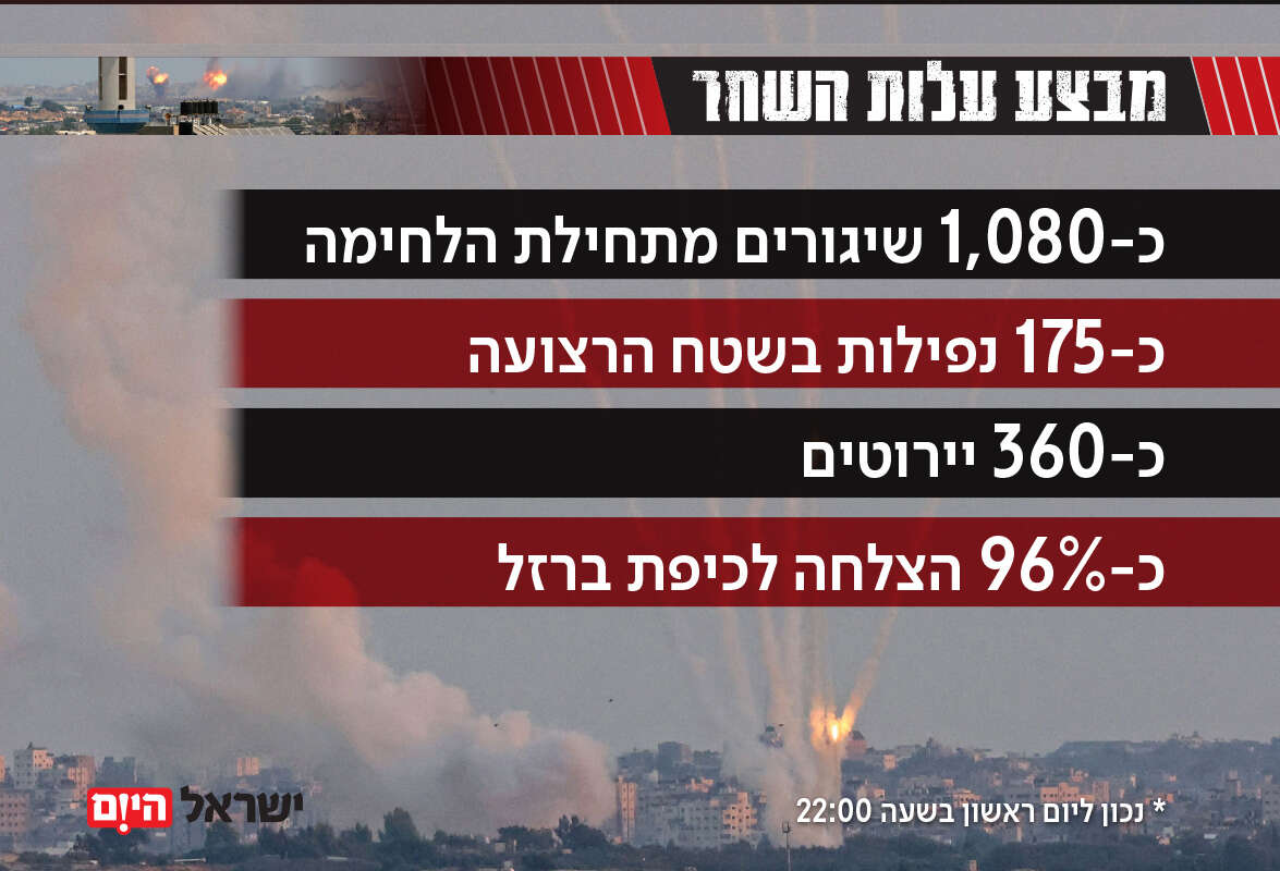 ביממה השנייה של המבצע: כ־580 רקטות שוגרו, 470 חצו לשטח ישראל, יותר מ־120 רקטות נפלו בשטח עזה, ואחת מהן ככל הנראה הרגה את חמשת הילדים בעזה. בוצעו כ־200 יירוטים עם כמעט 97% הצלחה.