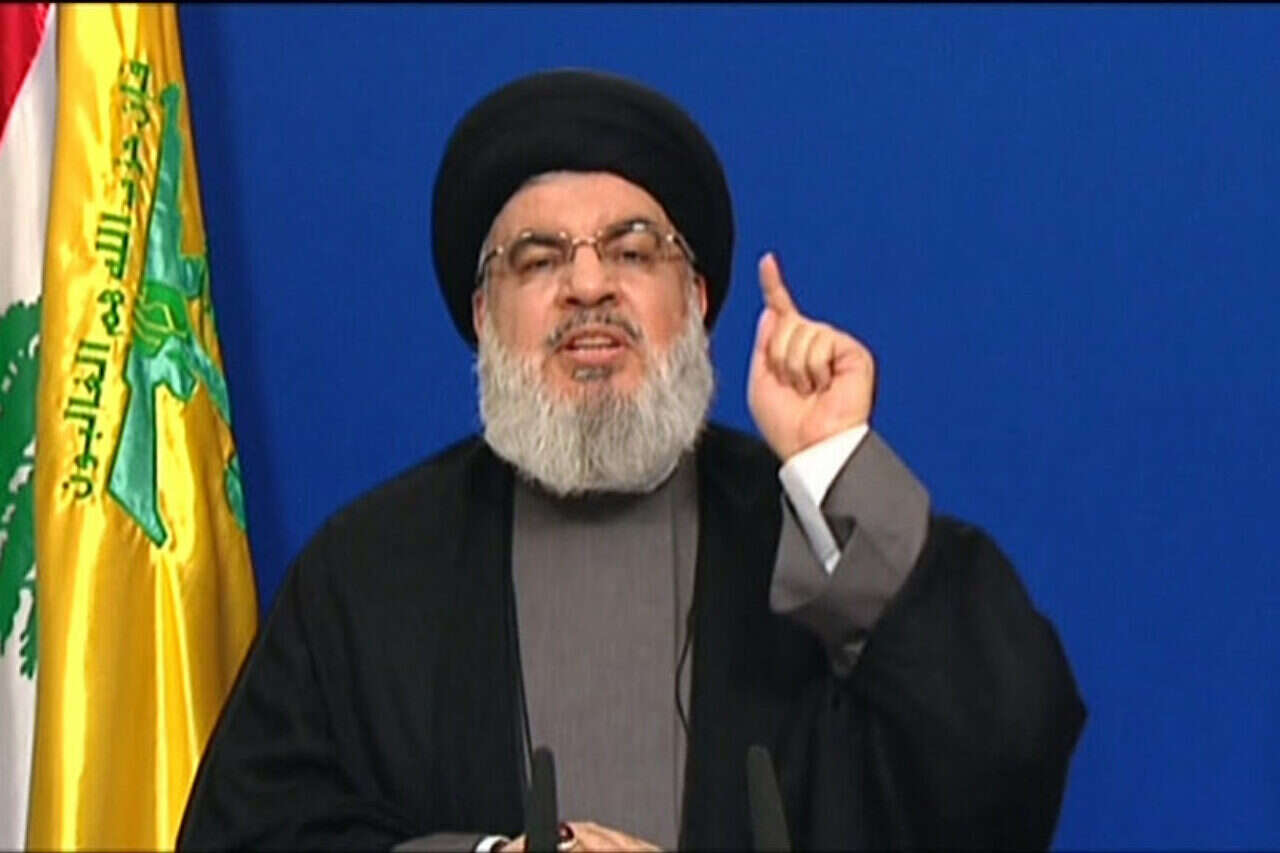 חסן נסראללה בזמן נאום