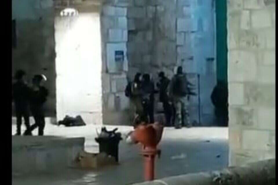 فيديو| قوات الاحتلال تعتدي على الفلسطينيين في سوق القطانين المحاذي للمسجد للأقصى قبل قليل. pic.twitter.com/Y9N4ehUgul