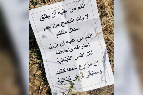 דיווח: כרוזי אזהרה לישראל הושלכו מגבול לבנון