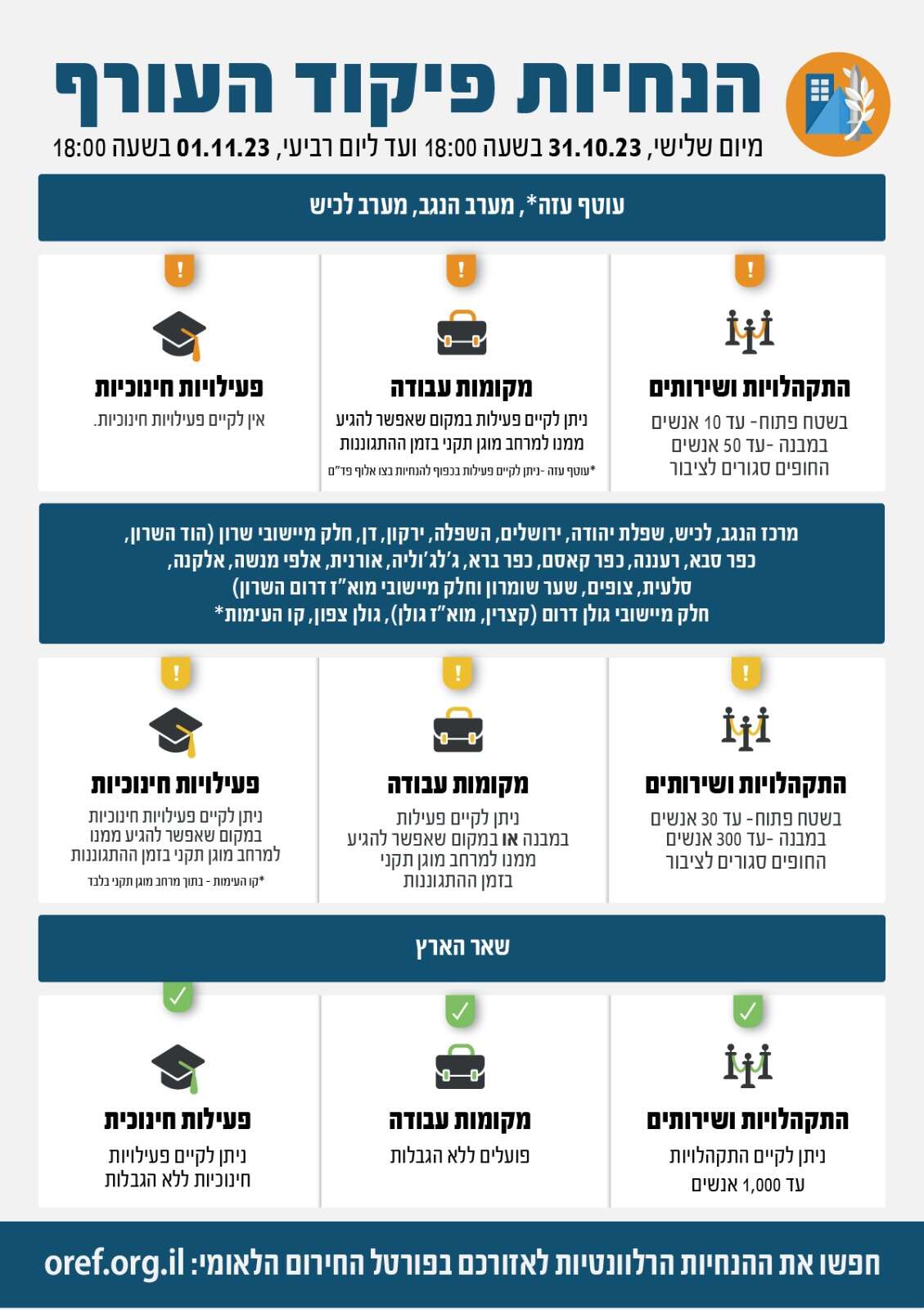 18:10: פיקוד העורף מעדכן את הנחיותיו: