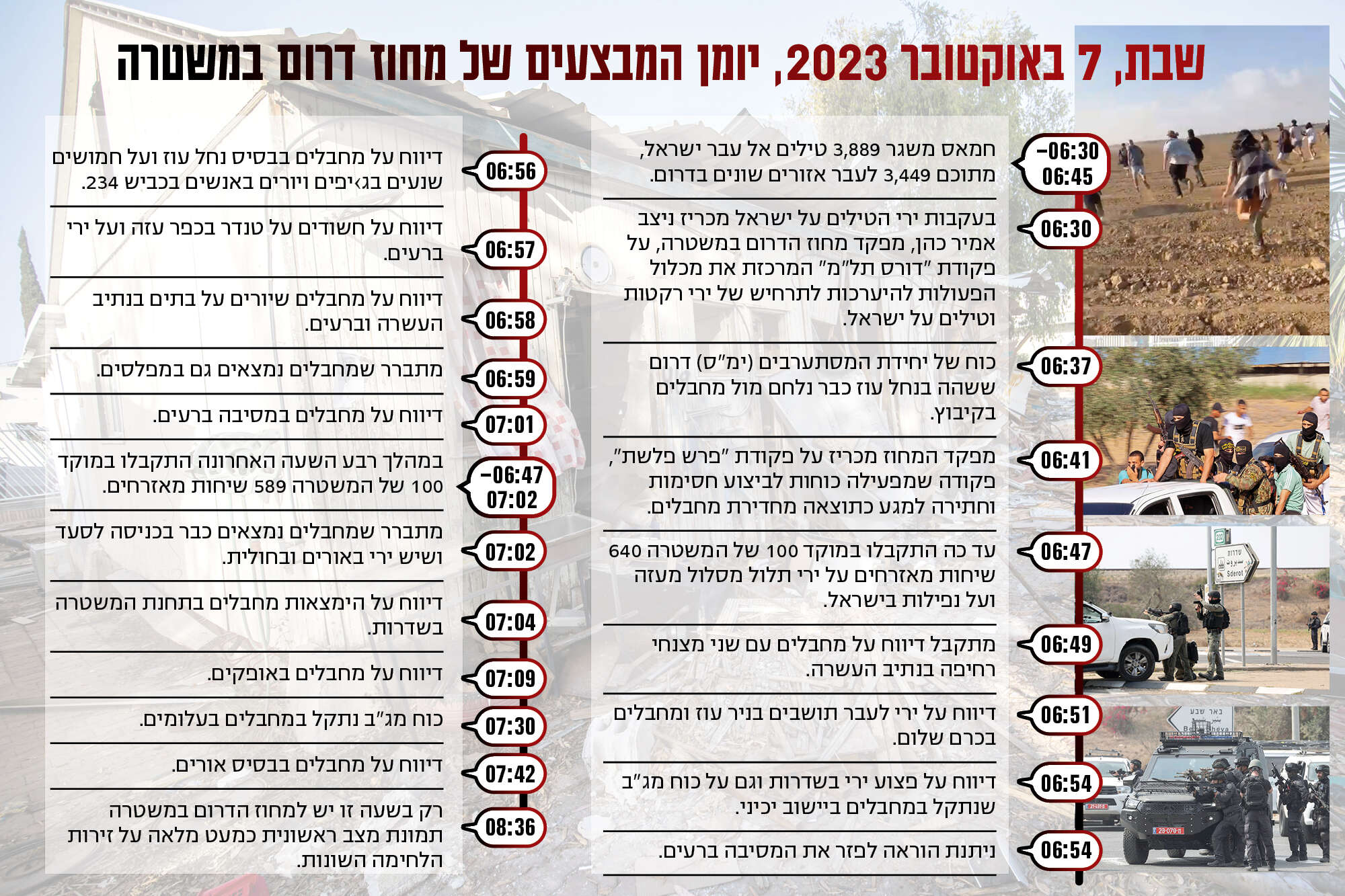יומן המבצעים של מחוז הדרום במשטרת ישראל, שנחשף כאן לראשונה, מתאר אחת לאחת את הדקות הראשונות של הלחימה בגזרת העוטף בשעה שמרבית האזרחים שהו במרחבים המוגנים.