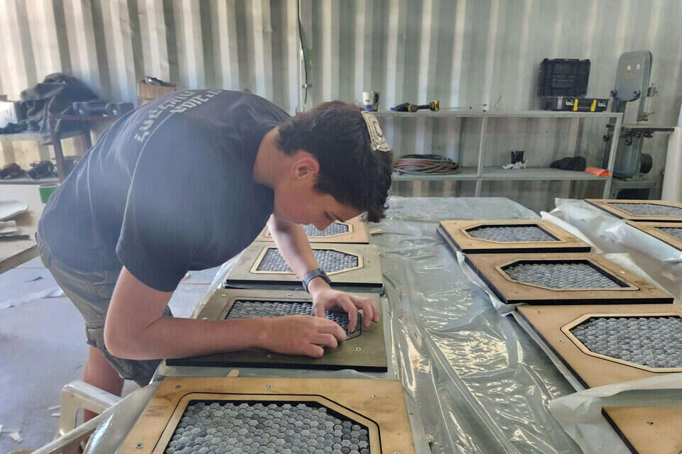 יואב שנייד ועוז ממן (16), עובדים כבר שבועות ארוכים בחברה, לצד פעולות התנדבות נוספות עם מפונים מעוטף עזה ועם לוחמי מילואים. "בהתחלה לא ידעתי בדיוק במה מדובר", מספר יואב. "יום אחד מיכאל בא אלי ואמר לי 'בוא תראה מה עשיתם', והראה לי תמונה של מיגון קרמי עם שבעה קליעים שפגעו בו. הוא סיפר שזה לוחם דובדבן שירו בו ולא קרה לו כלום. חטפתי שוק. זה מה שאנחנו עושים? הבנתי כמה משמעותית העבודה הזו. מדי פעם מיכאל מספר לנו כמה אנשים ניצלו בזכות השכפ"צים האלו".