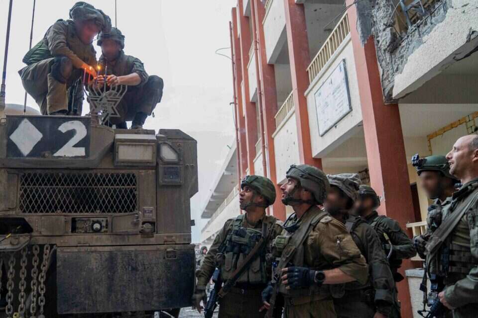 חיילי צה"ל מדליקים נרות חנוכה בתוך רצועת עזה // דובר צה"ל