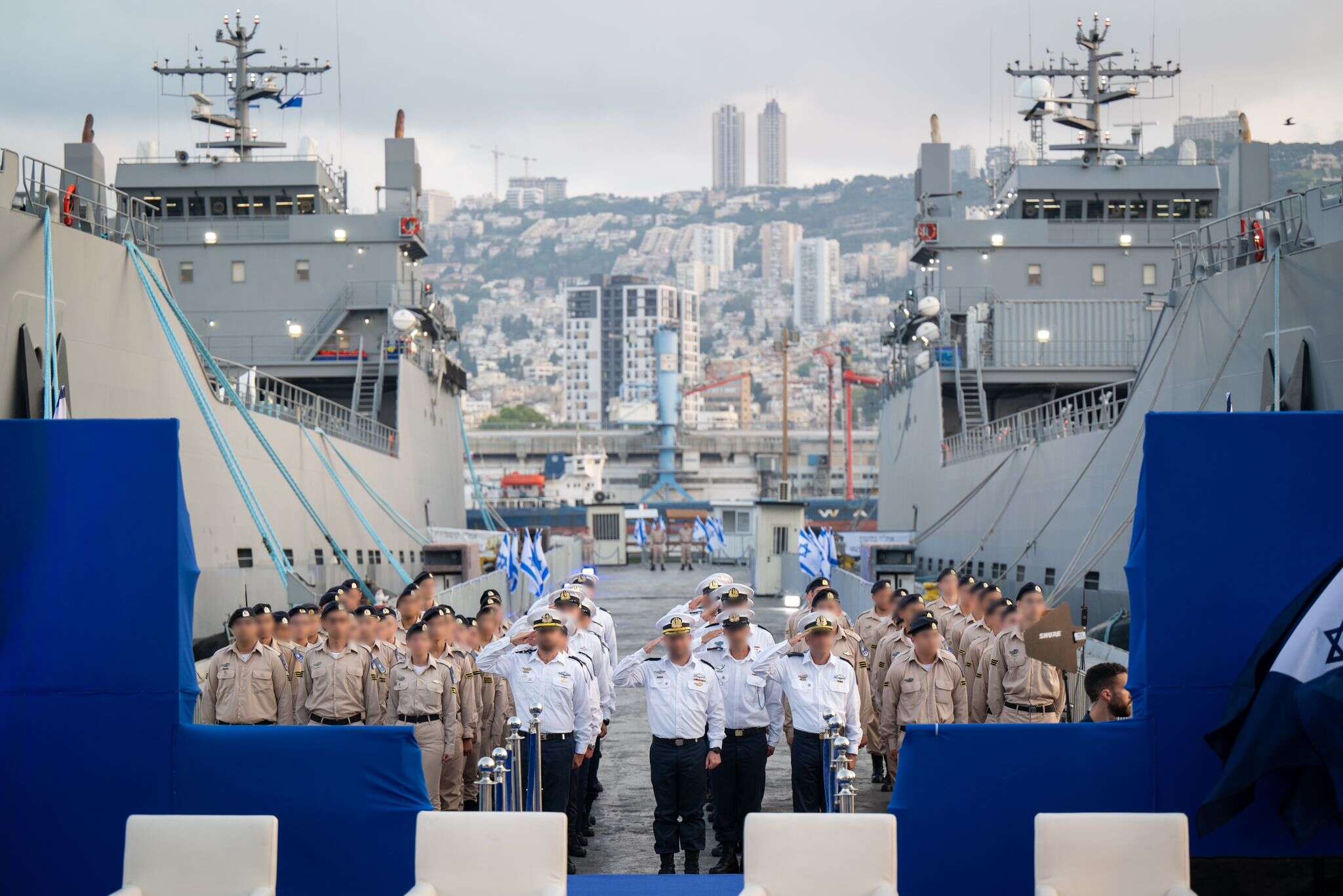 בצל ההגבלות על החימושים לישראל: זרוע הים ערכה היום (רביעי) טקס לקבלת זוג הנחתות החדשות בזרוע הים, אח״י נחשון ואח״י קוממיות בבסיס חיל הים בחיפה בראשות שר הביטחון, יואב גלנט, ראש המטה הכללי, רב-אלוף הרצי הלוי, מפקד זרוע הים, אלוף דוד סער סלמה, מפקדים נוספים, לוחמי פלגת הנחתות החדשה ומשפחות הלוחמים. זוג הנחתות השלימו את הפלגתן חוצת האוקיינוסים מנמל פסקגולה בארה״ב למדינת ישראל, שארכה יותר משלושה שבועות, והחלו את תהליך המבצוע שכולל ניסויים והתקנת מערכות לחימה תוצרת כחול-לבן במספנת זרוע הים. הנחתות נרכשו באמצעות כספי הסיוע של ממשלת ארה"ב לישראל, ובנייתן החלה לפני כארבע שנים.
