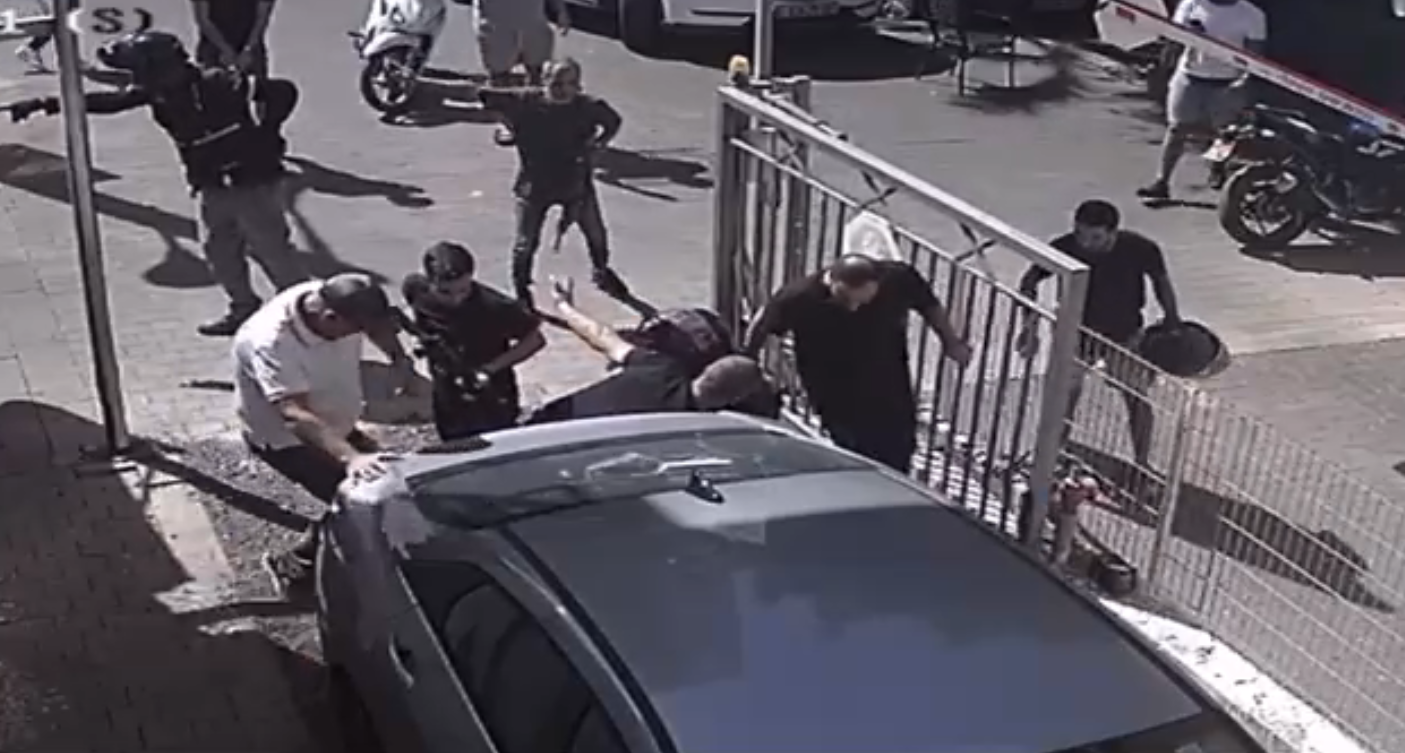 העובד בפיצוציה משליך לעברו כיסא ומיד מגיעים למקום שוטרים ופקחים. הם מכוונים אליו נשק, אך נראה שהוא לא מתרגש מהם. המאבטח העירוני יורה בו ברגל ולמקום מגיע שוטר המפיל אותו לרצפה. השוטרים מיד משתלטים עליו, אך בעוד הם משתלטים על המחבל, מגיעים למקום אזרחים ומנסים לבצע בו לינץ'.