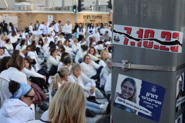 המחאה השקטה של משפחות החטופים מול הקריה, צילום: גדעון מרקוביץ