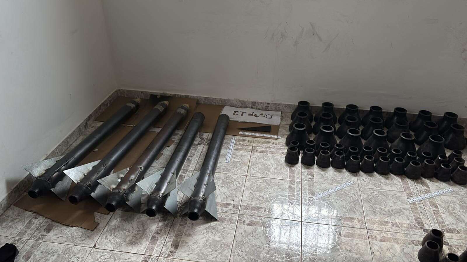 במבנה אותרו עשרות רקטות ביניהן שתי רקטות שיועדו לשיגור ללא ראש קרב, עשרות מטענים וחומרי נפץ, לצד ממצאים הקושרים אותם לייצור ונסיון שיגור רקטות.