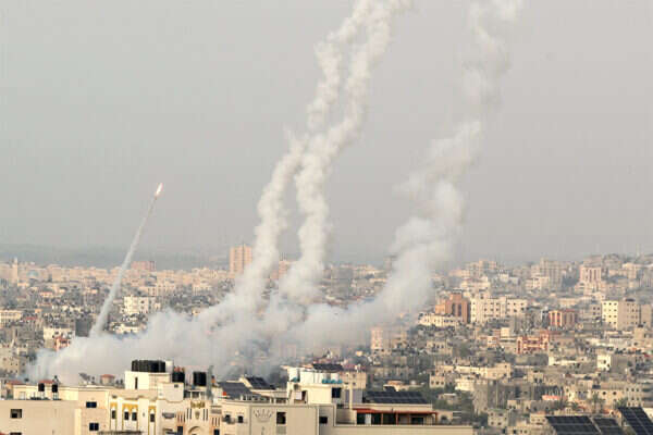 שיגור רקטות מעזה בזמן מבצע שומר החומות. | צילום: צילום: MOHAMMED SALEM