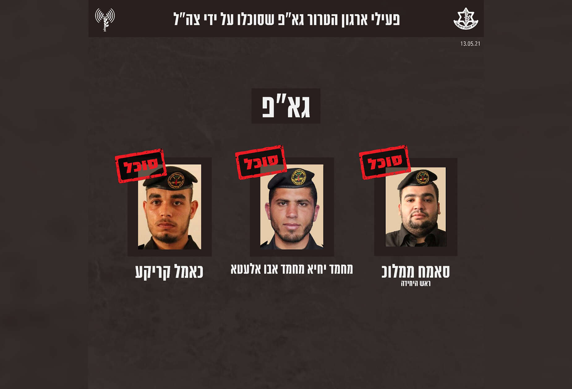 14:02: צה"ל פרסם את תמונותיהם של בכירי ארגוני הטרור חמאס וגא"פ שסוכלו בפעולות משותפות לצה"ל ושב"כ בימים האחרונים: