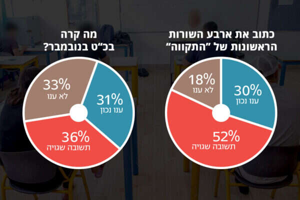 מניתוח התוצאות עולה כי רוב התלמידים סובלים מחוסר ידע בנושאים רבים. קצת קשה להאמין, אבל רק 30 אחוזים מתלמידי כיתות י"א וי"ב הצליחו לכתוב במדויק את ארבע השורות הראשונות של ההמנון הלאומי "התקווה".