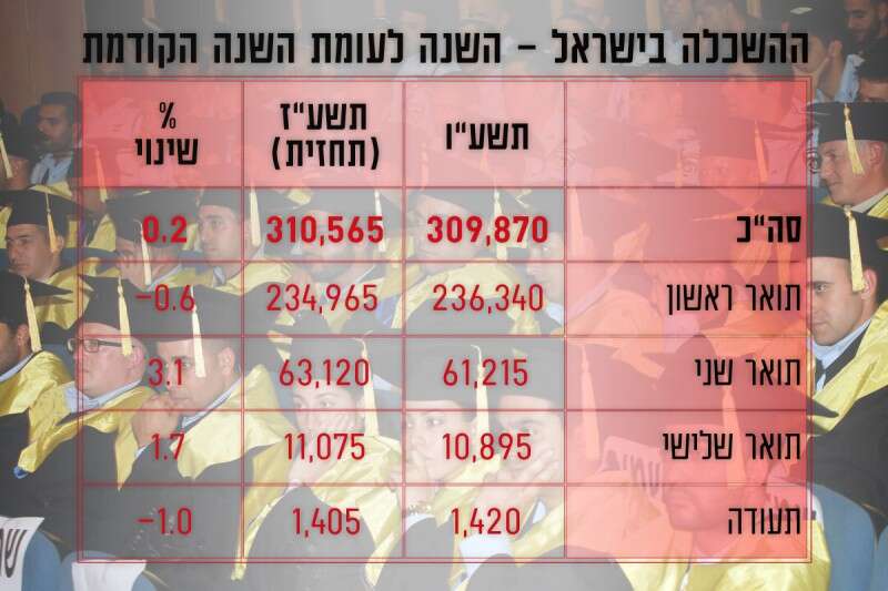 ירידה בניגשים לתואר הראשון - עלייה בניגשים לתואר השני והשלישי