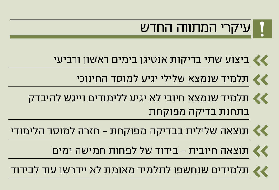 יודגש: תלמידים עם תסמינים נדרשים שלא להגיע ללימודים ולהיבדק בבדיקת אנטיגן ביתית.