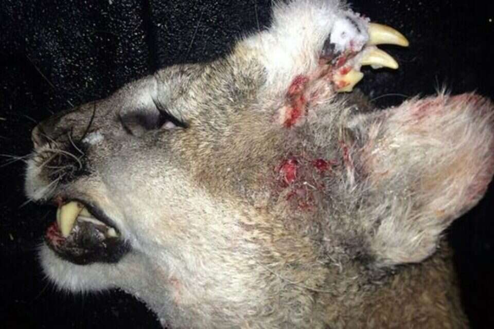 "ברחתי מהמקום כשראיתי אותו". הפומה והשיניים על מצחה // צילום: IDAHO FISH AND GAME // "ברחתי מהמקום כשראיתי אותו". הפומה והשיניים על מצחה