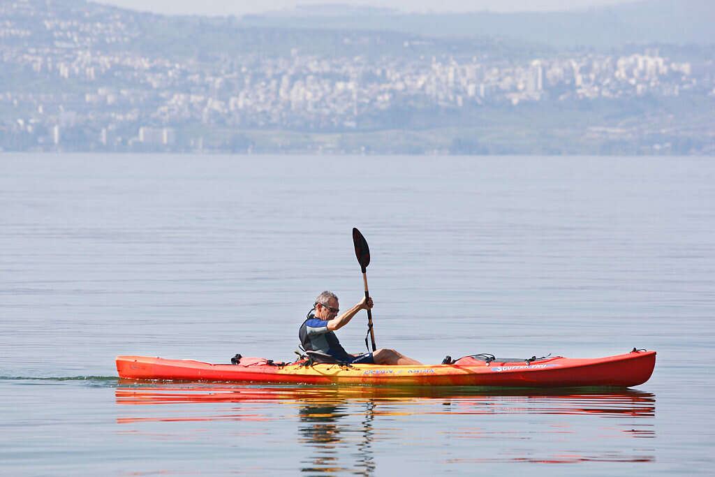 חותר קיאק בכינרת // צילום: עמי שומן //