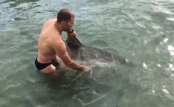 צפו: כרישה נלכדה והסתבכה ברשת דייג בחוף אכזיב