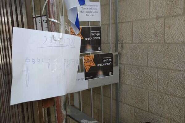 פעילי תנועת 'חוזרים להר' תלו היום (חמישי) שלטים ובהם הכיתוב "אין כניסה ליהודים ולכלבים", במחאה על סגירת הר הבית ליהודים בימים האחרונים של חודש הרמאדן. ההחלטה לתלות את השלט, שבינתיים כבר הורד על ידי השוטרים, היא בשל מה שהם מכנים 'כניעת הממשלה לחמאס'.