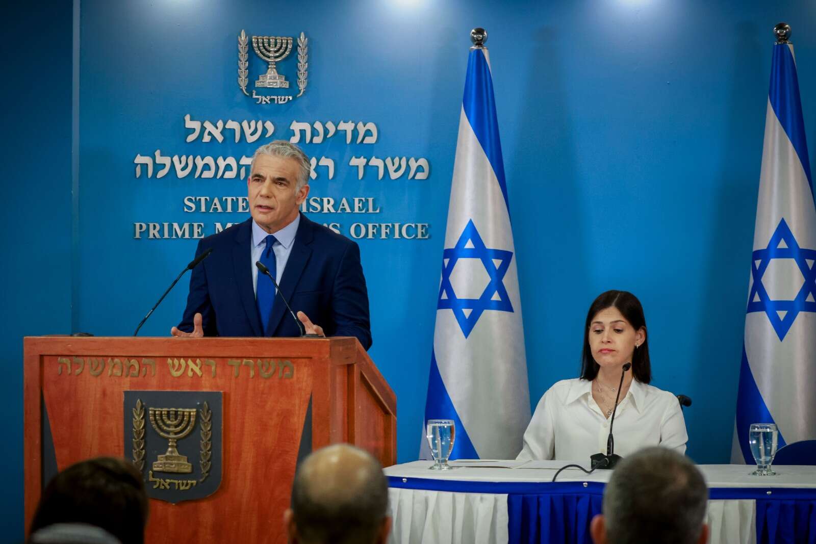 לאחר שהממשלה אישרה ברוב גדול את עקרונות ההסכם על הגבול הימי עם לבנון, ראש הממשלה לפיד ושר הביטחון גנץ קיימו מסיבת עיתונאים • "סירבנו לדרישות האחרונות של לבנון שהוסרו מהנוסח הסופי", הדגיש לפיד • גנץ: "ההסכם מבטיח את המשך חופש הפעולה באזור הסמוך לחוף ובכל מקום שיידרש"