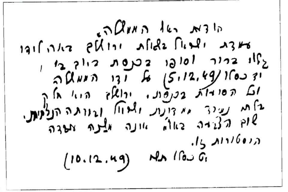 "עמדת ישראל בשאלת ירושלים באה לידי גילוי ברור וסופי בכנסת ביום ב', י"ד כסלו (5.12.49) על ידי הממשלה וכל הסיעות בכנסת. ירושלים היא חלק בלתי נפרד ממדינת ישראל ובירתה הנצחית. שום הצבעה באו"ם אינה משנה עובדה היסטורית זו", נכתב בי"ט כסלו תש"י (10.12.49).