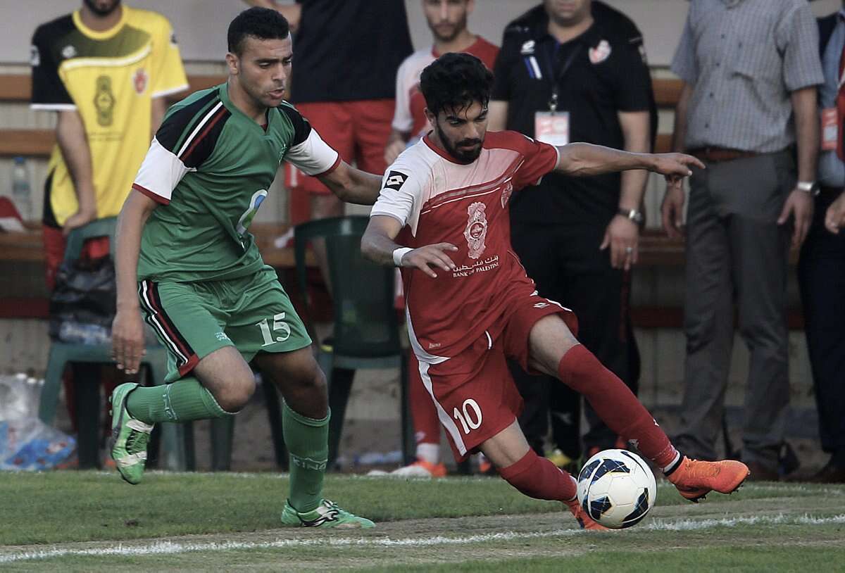 שחקן מקבוצת חברון ושחקן מקבוצת שוג'עיה במשחק בעזה, שנה שעברה // צילום: אי.פי.אי // שחקן מקבוצת חברון ושחקן מקבוצת שוג'עיה במשחק בעזה, שנה שעברה